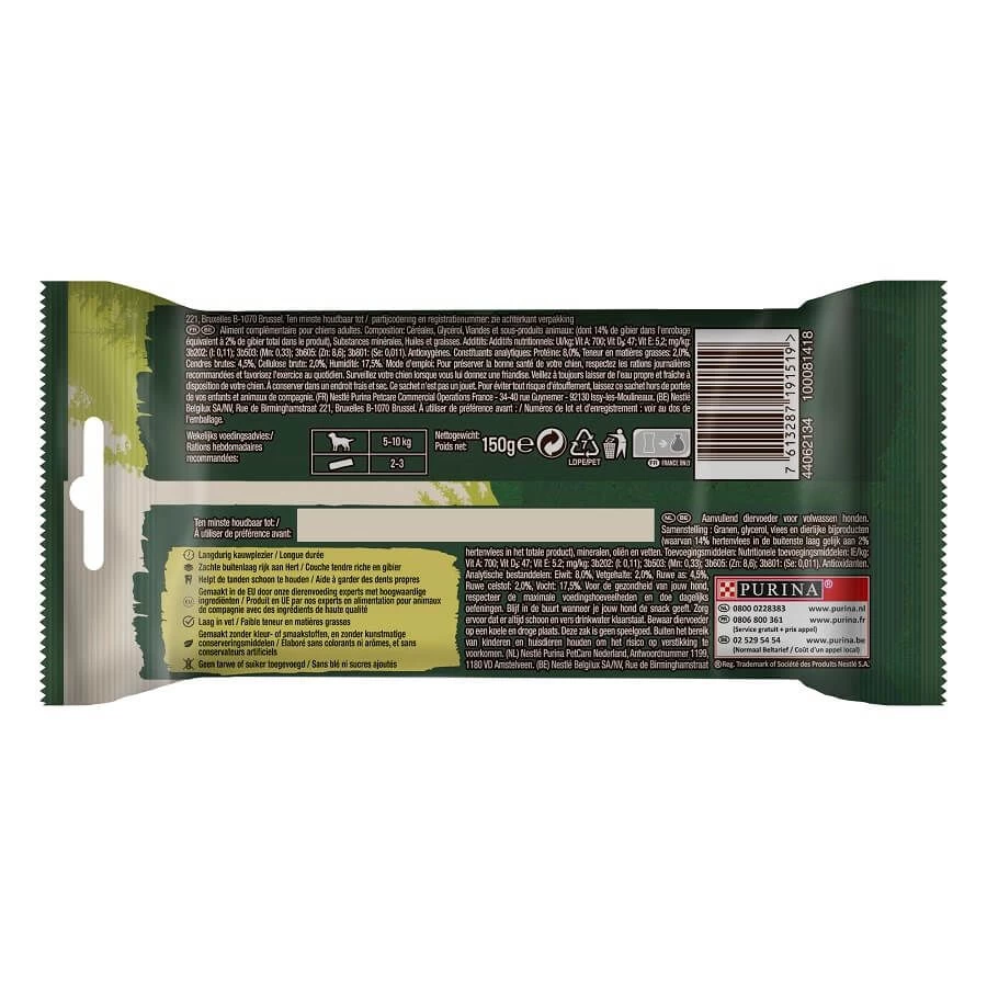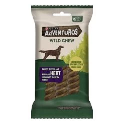 Adventuros a développé Wild chew un bâtonnet à mâcher longue durée enrobé d’une succulente couche tendre riche en gibier avec un intérieur moelleux. Ces friandises font appel à l’instinct primaire de votre compagnon de mordre, mâcher ou jouer.