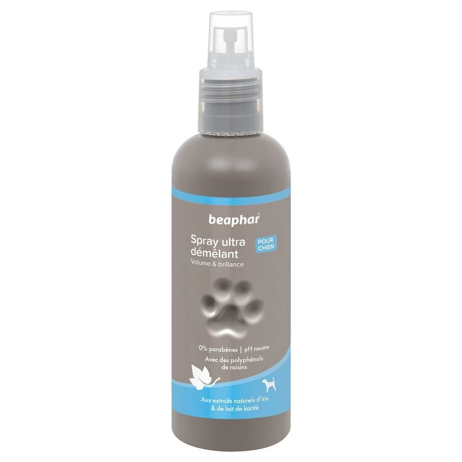 Découvrez le shampoing spray ultra démêlant conçu par Beaphar et composé d’extraits naturels d’Iris et de lait de karité.