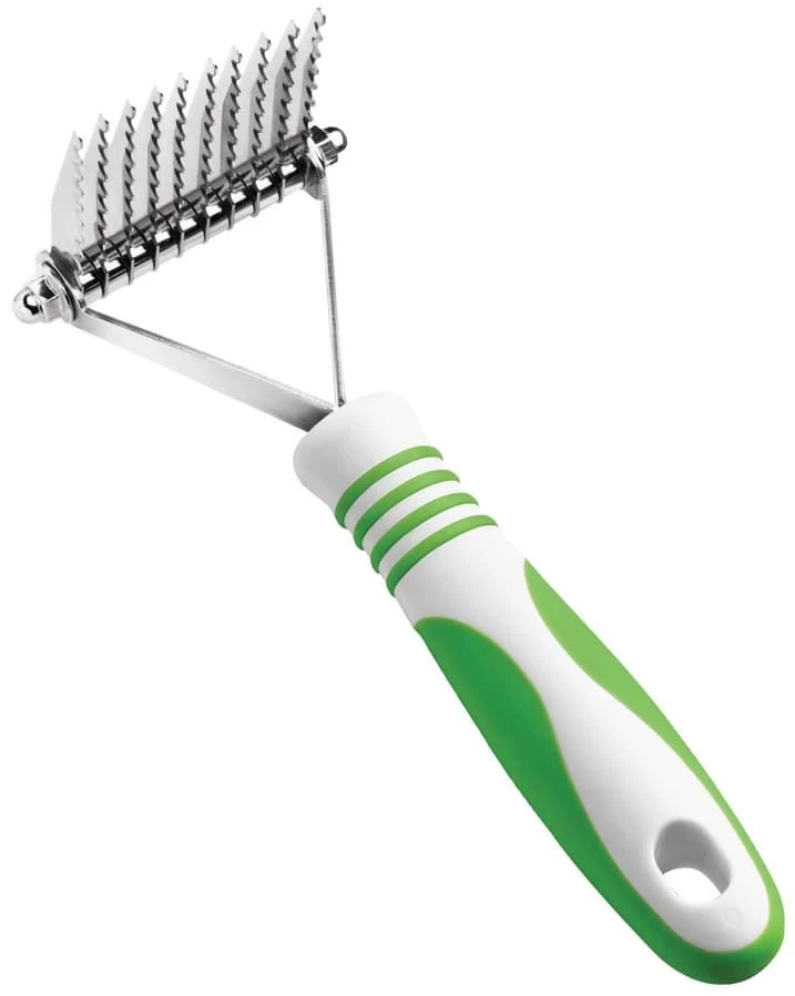 Le Peigne coupe noeuds de chez Gloria est un peigne qui permet de diviser les noeuds serrés et retirer (en les coupants) les poils morts du sous poils de votre chien.