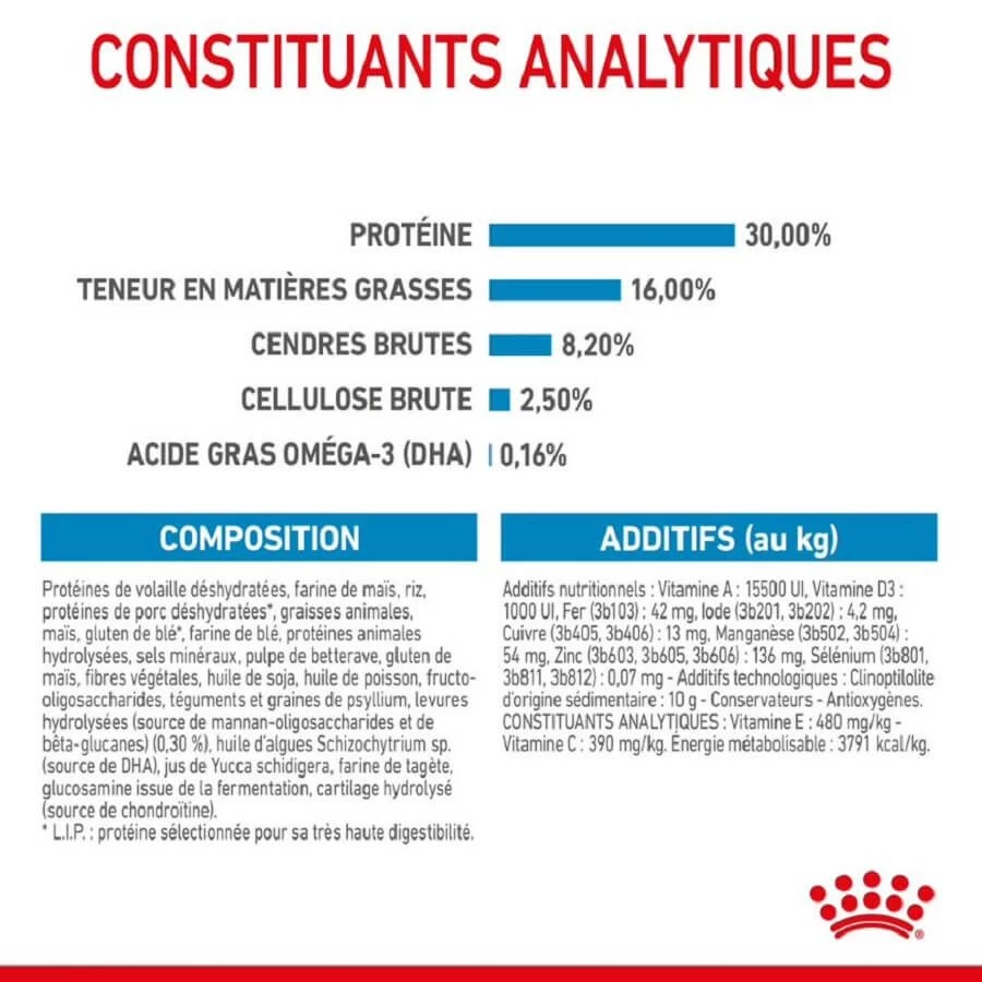Royal Canin Puppy Maxi est un aliment complet pour le chiot de grande taille (poids adulte de 26 à 44 kg) âgé de 2 à 15 mois.