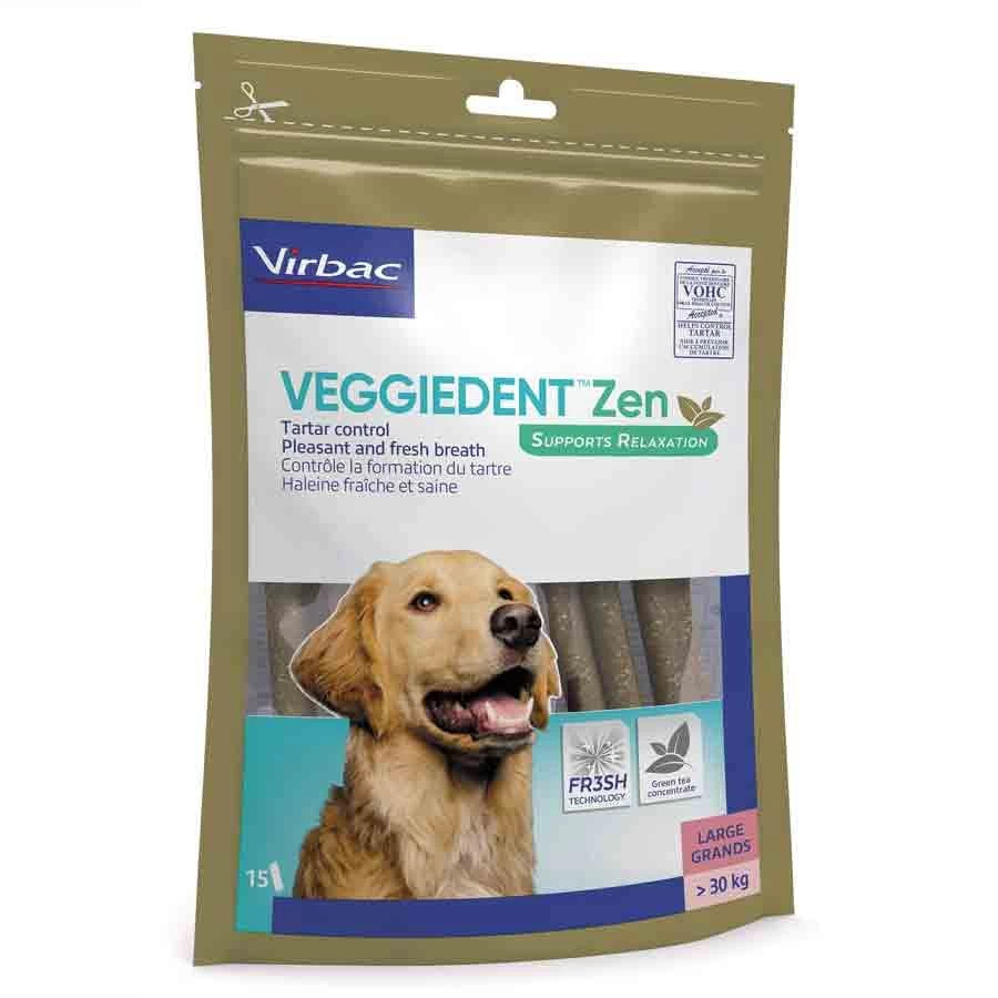 La mauvaise haleine est un problème majeur pour les propriétaires de chiens ainsi que le stress chez le chien. Veggiedent Zen propose une formule complète afin de vous permettre de prendre soin de l’hygiène bucco-dentaire de votre chien tout en le relaxant grâce à la L-théanine.